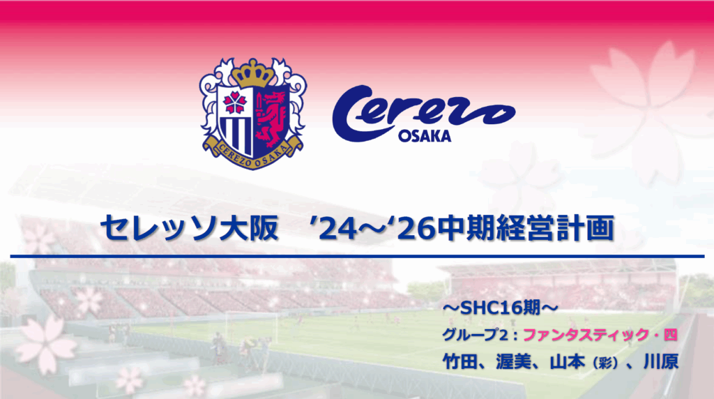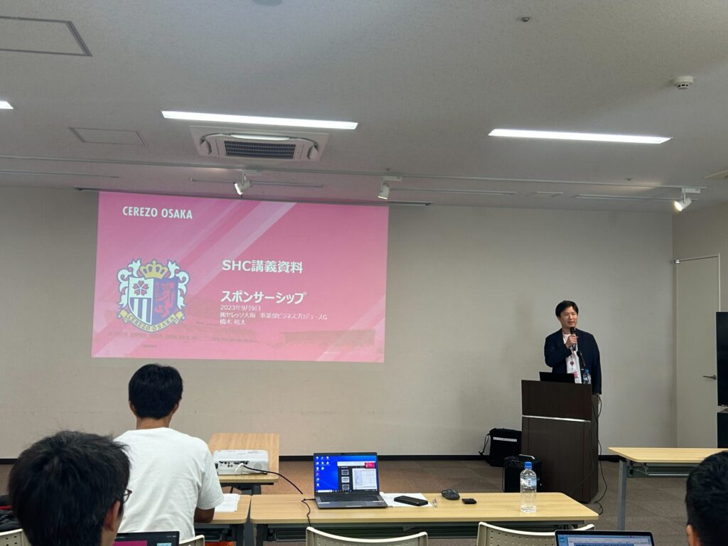 「サンフレッチェ広島」をこれからどうしていくべきなのかということをチームのメンバーと喧々諤々と議論した上で、さらにその議論したプレゼンテーションを実際の「サンフレッチェ広島」社長や取締役にプレゼンしていただきます。ここがSHCの最も良いところと考えております。